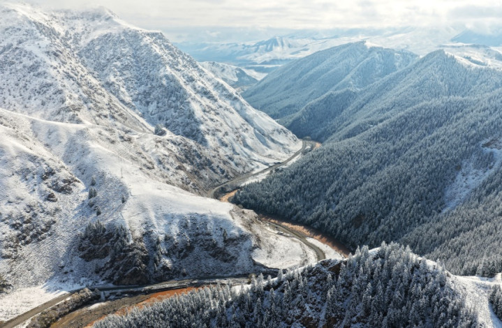 近日,青海省海北藏族自治州祁连县迎来了一场降雪。时值深秋,这场秋雪为尚未完全褪去秋装的山林草原披上了一层洁白的薄纱,呈现出秋日里难得的冬景画卷。